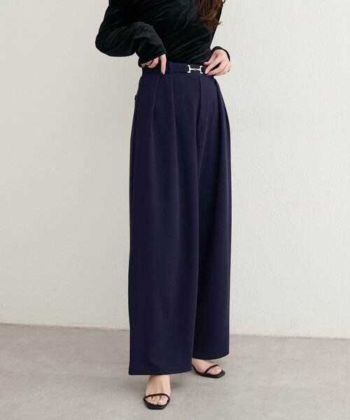 ハイウエストデザインと、ゴールドのビットベルトがアクセントになり、スタイルアップ効果も叶えます。