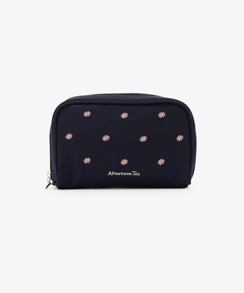小さなフラワー刺繍をあしらった仕切り付きポーチです。