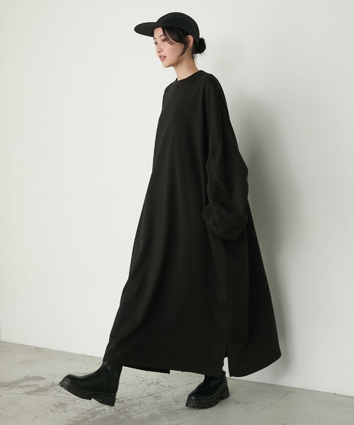 ゆったりとしたオーバーサイズシルエットが特徴のギャザースリーブワンピース。