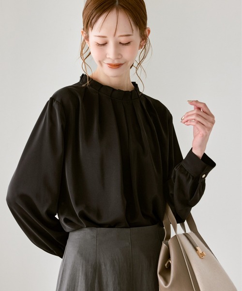 ・タック襟がエレガントな長袖プルオーバーブラウス。