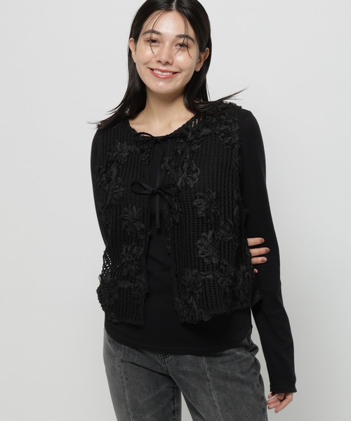 立体的なモチーフが映える、表情豊かなレーシーベスト。