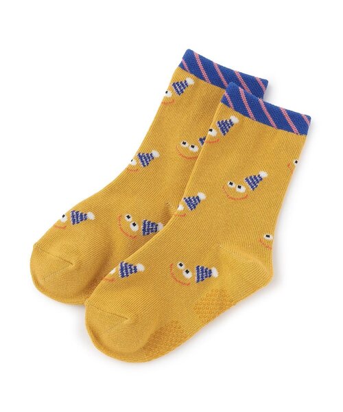 ユニークな顔の総柄が個性あふれるクルーソックスです。
