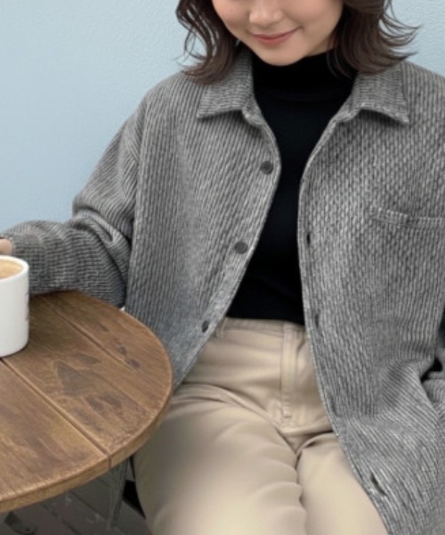 羽織りとしても、ボタンを閉めてトップスとしても活躍する万能アイテム。