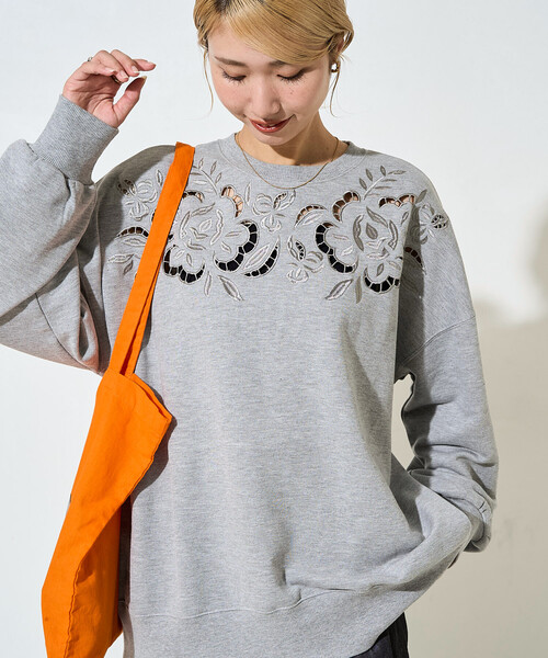 1322248901455:フラワーカット刺繍裏毛スウェットプルオーバー