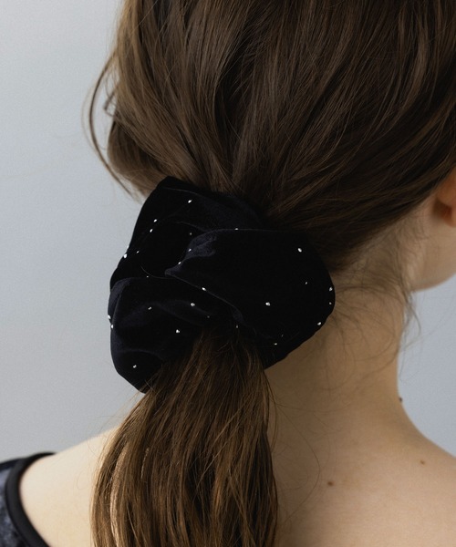 スタッズが散りばめられたベロア素材のシュシュ。