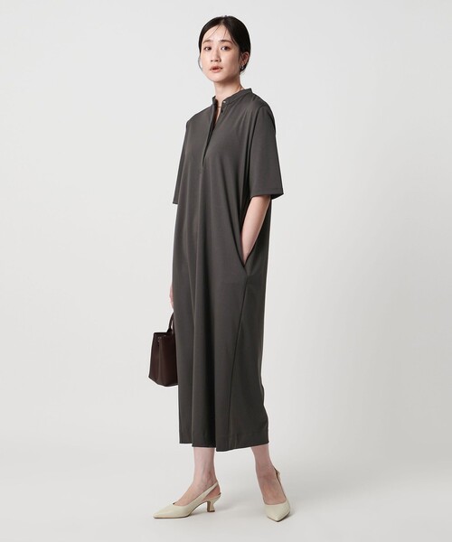 素材の特徴を活かした布帛見えするハーフスリーブワンピース。