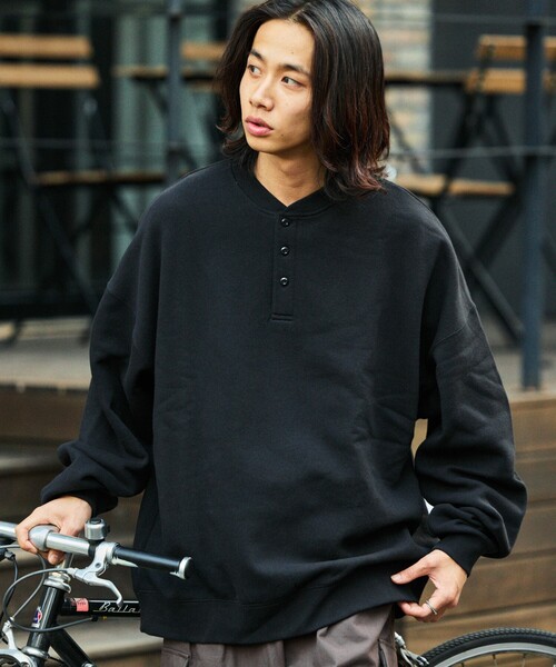 ビッグシルエット ヘンリーネック スウェットプルオーバー●探すとあまり出てこない、ヘンリーネックタイプのプルオーバースウェット
