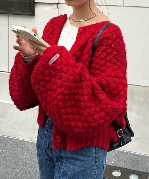 ぽこぽこした表面感が可愛いニットカーディガン!