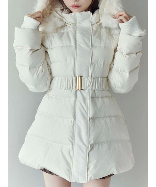 ベルト付きダウンコートクビレデザインなのでスタイルアップできるアウター