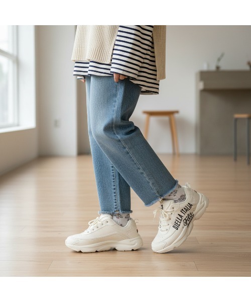FILAのクリーンなイメージをスポーティに再解釈したデザインです。シンプルなアッパーにFILAフラッグと大胆なラインがデザインポイント。程良いハイプロファイルのアウトソールを採用することで、FILAらしいカジュアルでトレンディーなムードを演出したニューベーシックスニーカーです。大胆なプリントがコーディネートの主役になるFILAらしいアイテムです。