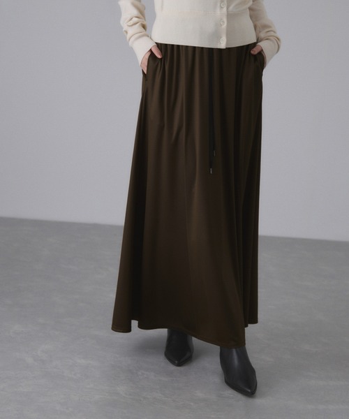 落ち感のある素材と揺れるギャザーが魅力的なフレアスカート。