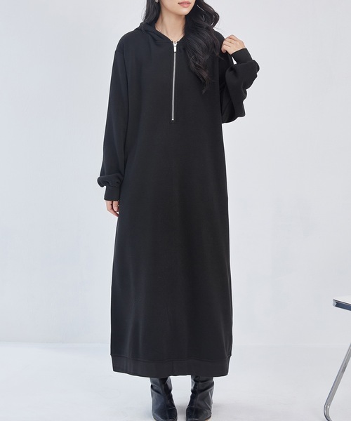 ファスナーの開け閉めでガラリと印象が変わる、着まわしアレンジのきく1着。