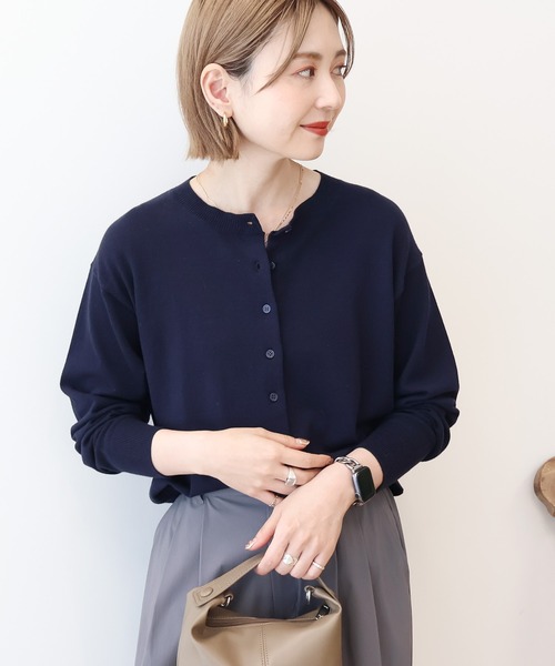 軽やかなコットンブレンド素材のクルーネックカーディガン。