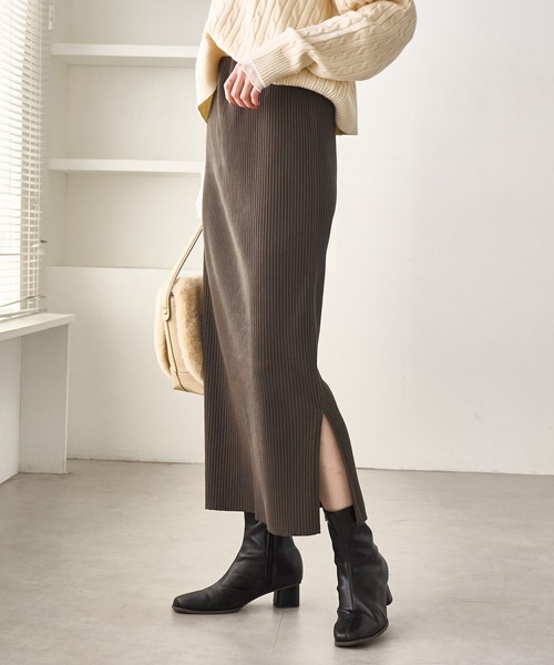 ・伸縮性に優れた、トタンテレコ素材のIラインニットスカート。