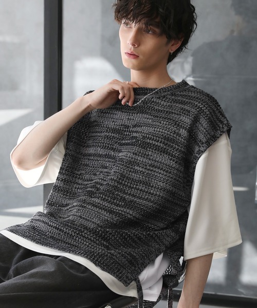 参考商品名:サイドレース透かし編みメランジメッシュベスト