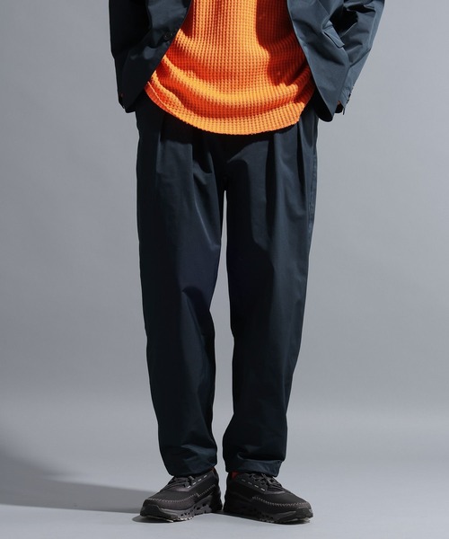 ◆ワイドなワタリ幅と股下の切り替えにより快適な可動域を確保しつつ、裾に向かって緩やかに細くなるシルエットが、スマートで洗練された印象を演出します。