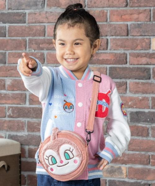 ドキンちゃんのアップリケ刺繍が可愛いボア素材を使用したポシェット♪マチと肩紐にはコーデュロイを使用しており、異素材の組み合わせがおしゃれです。