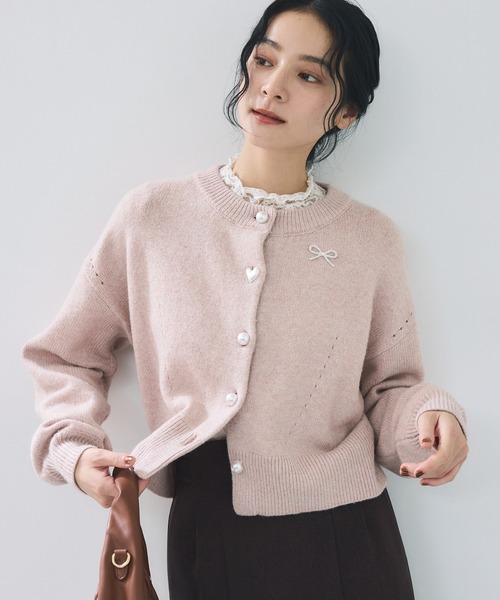 その他仕様:ラメ糸が織り込まれている。上から2番目のパールボタンがハート仕様。