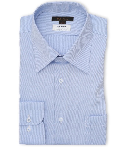 上質な綿100%素材、「ネクスコット/NEXXCOTT」を使用しています。液体アンモニア加工+モイストキュア加工を施し、天然素材の風合いはそのままに防シワ性を持たせています。柔らかな肌触りで着心地が良く、繰り返し洗っても丈夫で着用が可能です。表面感のあるドビーの織り柄(ツイル)です。
