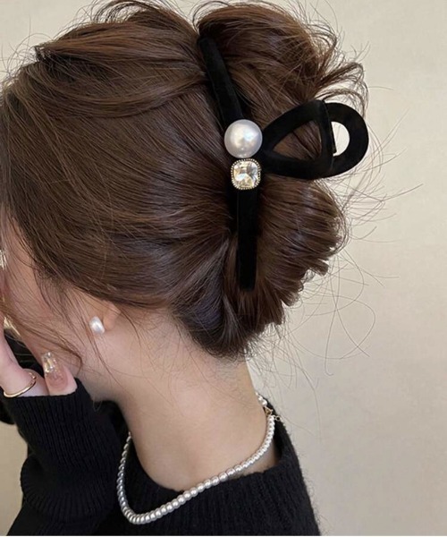 【 ammy. / エイミードット 】 パール ビジュー デザイン ベロア ヘアクリップ