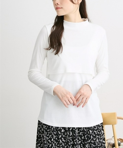 商品名:【産前・産後 授乳服】授乳しやすい モックネック長袖マタニティTシャツ