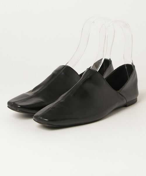 参考商品名:かかとを踏める スクエアトゥセンターステッチデザインバブーシュ