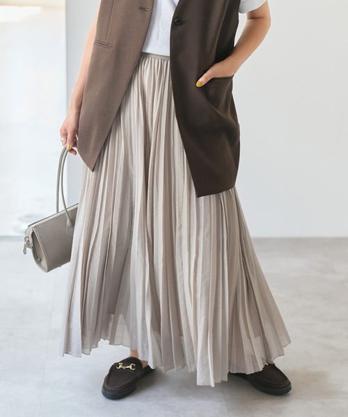 透け感と揺れ感で魅せる、大人のマキシプリーツスカート。