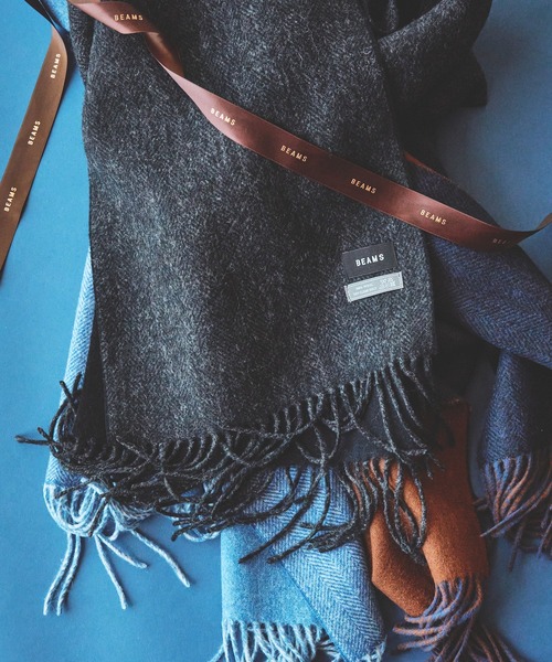 ヘリンボーンとソリッドカラーの表情が組み合わさったベーシックなデザインが特徴。表裏でカラーリングに変化をもたらしつつも、巻き方によって様々な表情も楽しめるアイテムです。