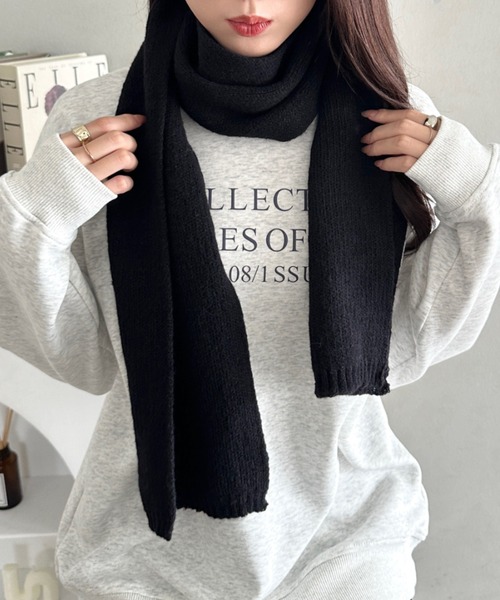 コンパクトサイズで巻きやすく、アウターやニットに合わせやすいデザインです。