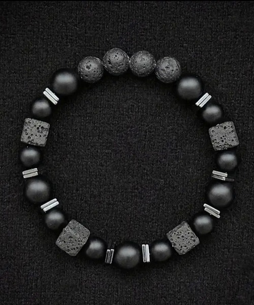 また、溶岩石は「浄化」「エネルギー」、オニキスは「魔除け」「精神の安定」の意味を持つとされ、ファッション性とパワーストーンの効果を兼ね備えています。伸縮性のあるゴム仕様で着脱も簡単。