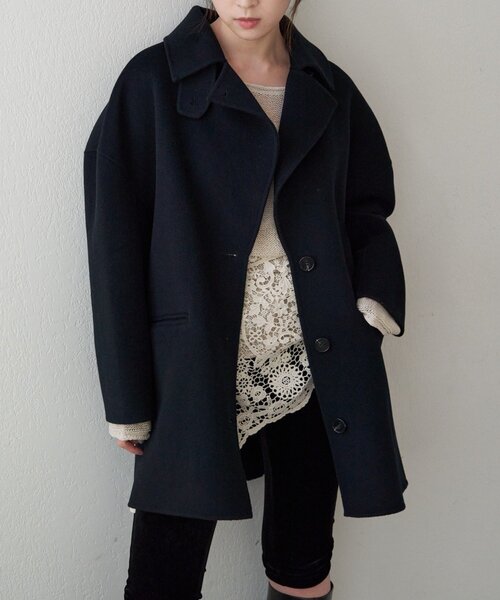 スタンダードとこなれ感を兼ね備えたミディアムコート。襟まわりの雰囲気に変化を付けられ、顔まわりを華やかに見せてくれる一着。
