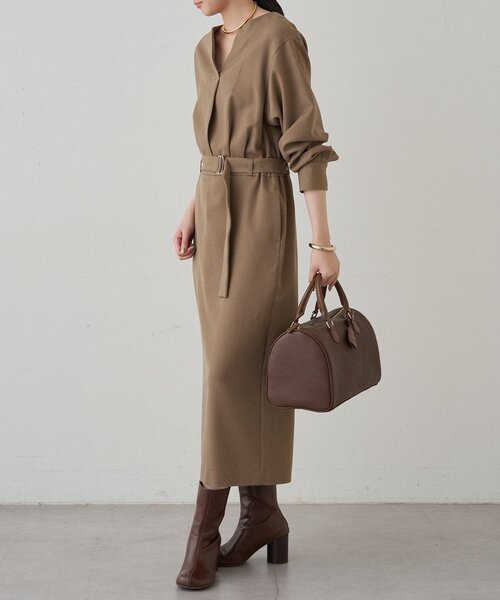 ■コーディネート一枚で着るだけでスタイリングが完成するワンピースは、足元はブーツで秋らしく、パンプスで上品に。
