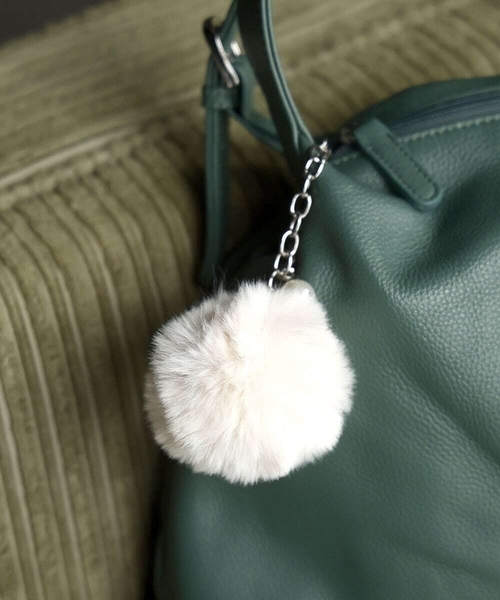 バックに華やかな印象をプラスするファーチャームです。