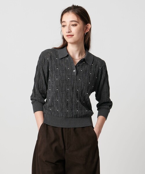 レース×フェイクパールが女性らしいポロニット■デザイン