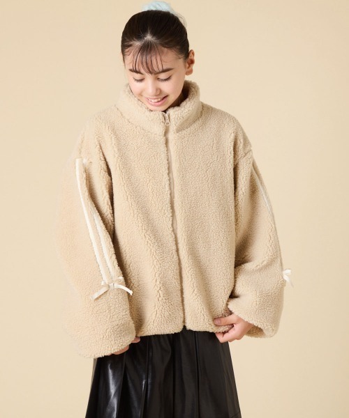 ・袖のラインとリボンがアクセントの着映えアウター。