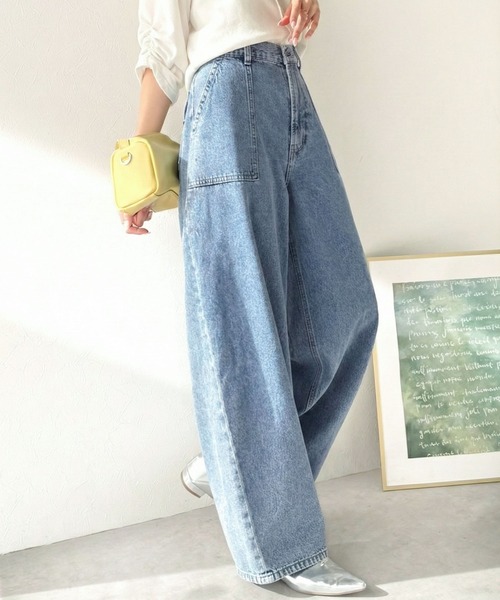 ベイカーポケットをアクセントにした、裾に向かって丸みを持たせたバルーンシルエットのデニムパンツ。