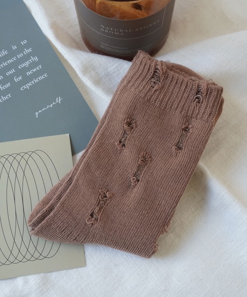 シンプルなワンカラーにダメージデザインのソックス