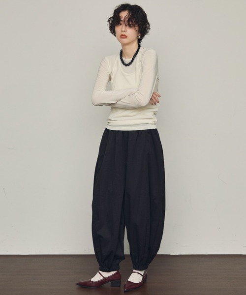 ゆったりとしたシルエットと裾のギャザーで立体感を出したバルーンロングパンツ。