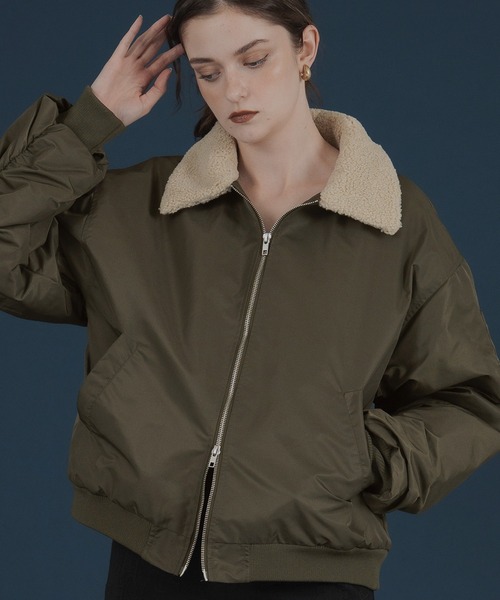 ・シーズナルな雰囲気を高めるボア襟がポイントの、ナイロンジャケットブルゾン
