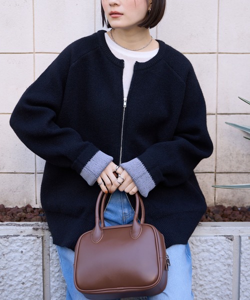 こなれ配色で差がつく大人のダブルジップニットカーディガン