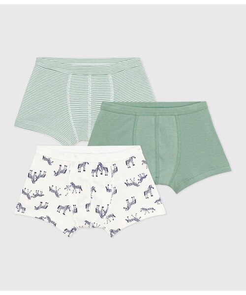 アイコニックなミラレボーダー、可愛いシマウマ柄、シンプルなプレーンカラーで揃えたトランクス3枚セットです。環境にやさしい、第二の肌と呼ばれるやわらかな手触りと伸縮性に優れた1×1リブ編み素材を使用し、快適な着用感を実現しています。ご自宅用としてはもちろん、何枚あっても嬉しいアイテムはギフトにも最適です。※プリントは永久的なものではなく、もみや摩擦でひび割れたり、繰り返しの洗濯によるプリントの変色や、脱落が生じる場合があります。中性洗剤などで単独洗いをしてください。
