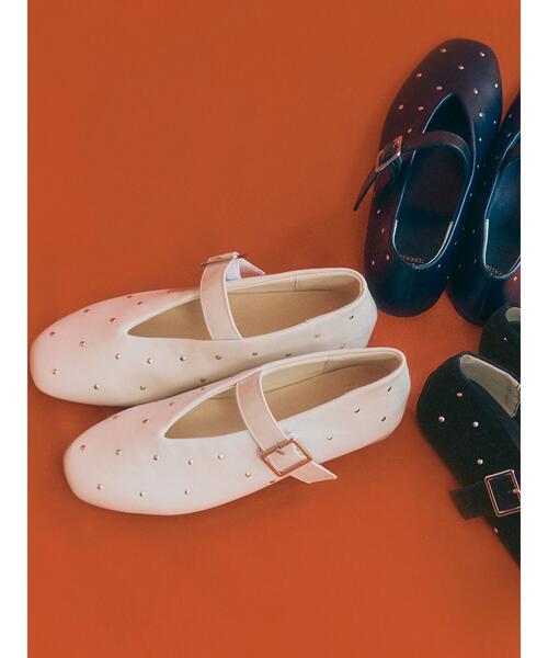 煌びやかなスタッズが散りばめられたバレエシューズ。