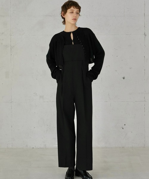 スーツ生地を使用した快適な履き心地のキャミサロペット。