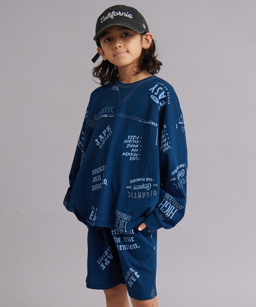 インパクトのある落書き風のランダムロゴプリントのセットアップ。おしゃれキッズにピッタリなアイテムです。