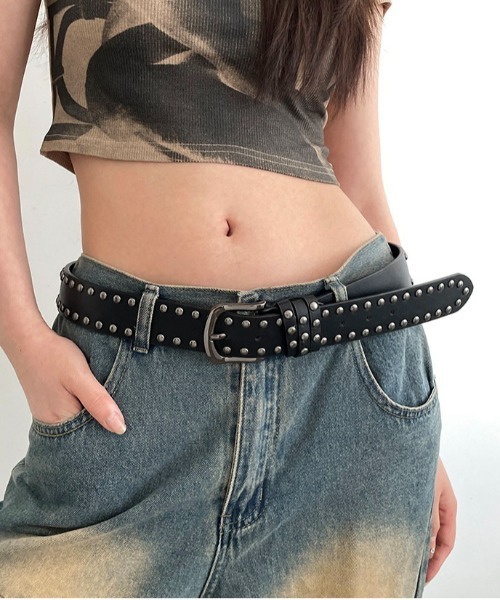 程よい存在感のあるメタルスタッズとシンプルなバックルの組み合わせが、ストリートからロックテイストまで幅広くマッチします。