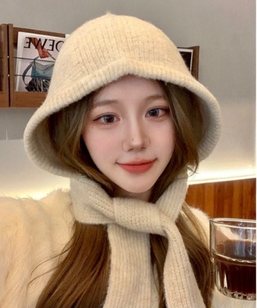 ふわっと柔らかいニット素材が頭から首元まで優しく包み込み、冷たい風をしっかり防いでくれます。