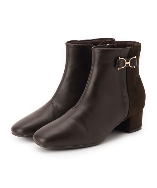 すっきりとした優しいスクエアトゥのデザインショートブーツ。