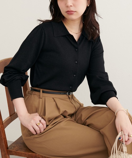 カジュアルなニット素材ながら、襟付きデザインで上品さをプラス。