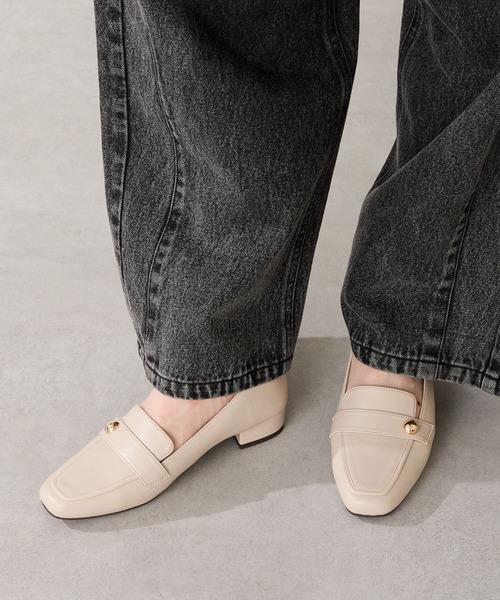 ローファー パンプス 3cmヒール ミドルヒール 太ヒール チャンキーヒール スクエアトゥ クッション 柔らかい ビジュー モチーフ オフィスカジュアル オフィス オフィスカジュアル OL 仕事