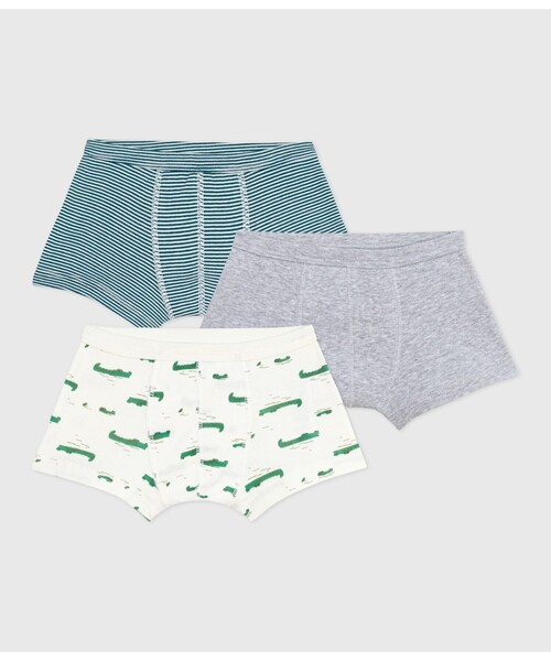 愛らしいワニプリント、アイコニックなミラレボーダー、霜降りグレーを揃えたトランクス3枚セットです。第二の肌と呼ばれるやわらかな手触りと伸縮性に優れた1×1リブ編み素材を使用。何枚あっても嬉しいアイテムは、ご自宅用としてはもちろん、ギフトにもおすすめです。※プリントは永久的なものではなく、もみや摩擦でひび割れたり、繰り返しの洗濯によるプリントの変色や、脱落が生じる場合があります。中性洗剤などで単独洗いをしてください。
